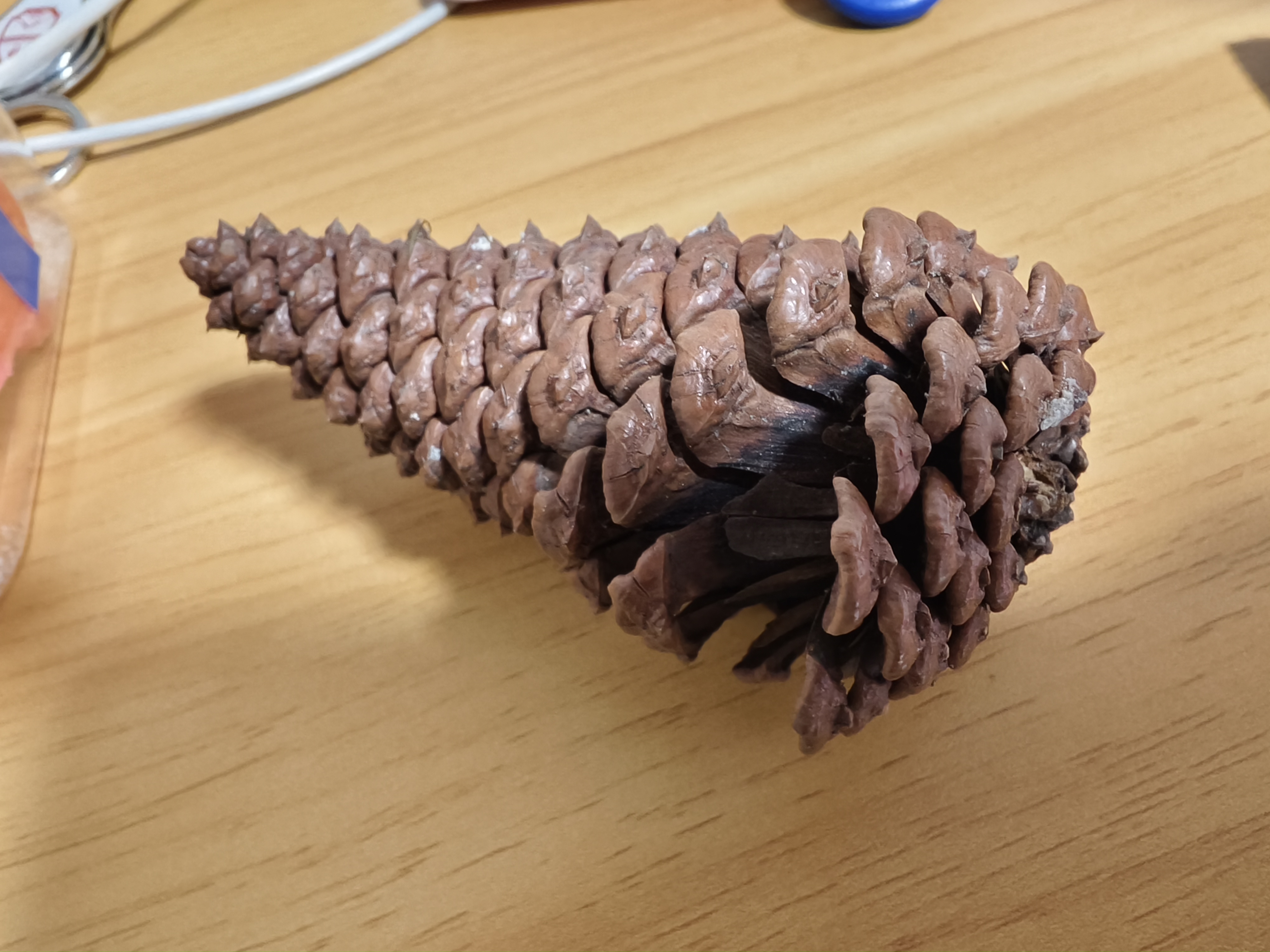 回去的路上捡的松果,在家里面放了几天就全部展开了,不过还没成熟,里面的松子很小。