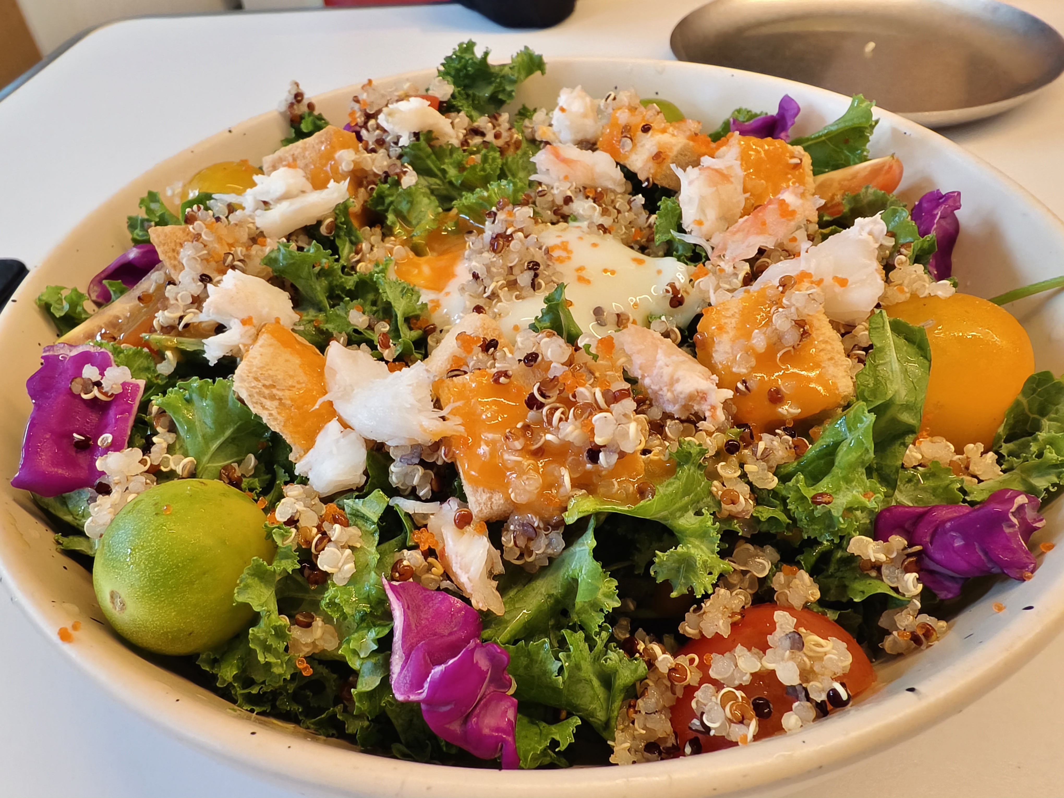 人均100+ 在临港,店里环境不错,菜量不太大,但是都很精致。点了鱼子酱沙拉,意大利面和肉串。赶上端午节老板还给送了粽子 龙阳路站的毕加索墙画,色彩非常艳丽。
